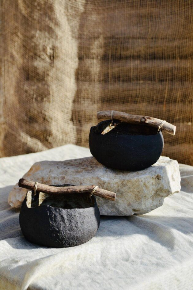 Mon désir est de créer des objets utilitaires dissemblables et faits main, de leur faire habiter poétiquement le monde en reliant la terre au végétal.